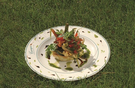 14H (ou presque) nous traversons la partie « historique » des lieux beaucoup plus « séduisante » soit dit en passant ! Les tomettes sont superbes, bien que vernies, et puis la succession de petits coins et recoins, de salons pour se délasser, avec ou sans cheminée, des poutraisons (très XVIIème), un bar « rustique » avec vitrine à alcool, et puis le dédale de petits couloirs menant soit en terrasse soit en salle, une salle superbe mais avec cette connotation « salle des fêtes » que l'on retrouve dommageablement dans nombre d'auberges de France et de Navarre . Des cuisses de grenouilles panées aux épices, et leur gâteau d'amandes aux herbes, des langoustines grillées en coque et leurs Barigoules d'artichauts violets, des gambas poêlés et leur méli-mélo de pâtes et légumes au citron confit font, certes, dans la recherche, l'inventif, notamment avec ce côté pané des cuisses de grenouilles ou ces gambas « dépiautées » et fort habillement préparées, mais on demeure, malgré tout, en deçà de notre attente. Vingt-cinq ans d' « expérience », et de savoir-faire, nous laissaient « envisager » tout autre chose ! Les petits pains (pourtant maison) se révèlent (assez) secs peut-être bien à cause de la chaleur ambiante. Cependant, le vin conseillé par le directeur et sommelier, un Iles de Vergelles – 1er cru – Domaine Dubreuil Fontaine, ne nous fera pas « frémir » d'émotion ! Pis encore, il aura en palais cet « arrière » bouche de petit vin de table pas franchement idoine ! Par contre, le Nuits Saint-Georges-1er cru-Clos de la Maréchale-Jacques Frédéric Mugnier-2005, aura une toute autre tenue mais sans réussir, lui non plus, à convaincre ! La grosse sole grillée, cuisinée « Meunière », à la façon du chef, n'a rien de transcendantale ni de très différente d'une sole Meunière « classique » !